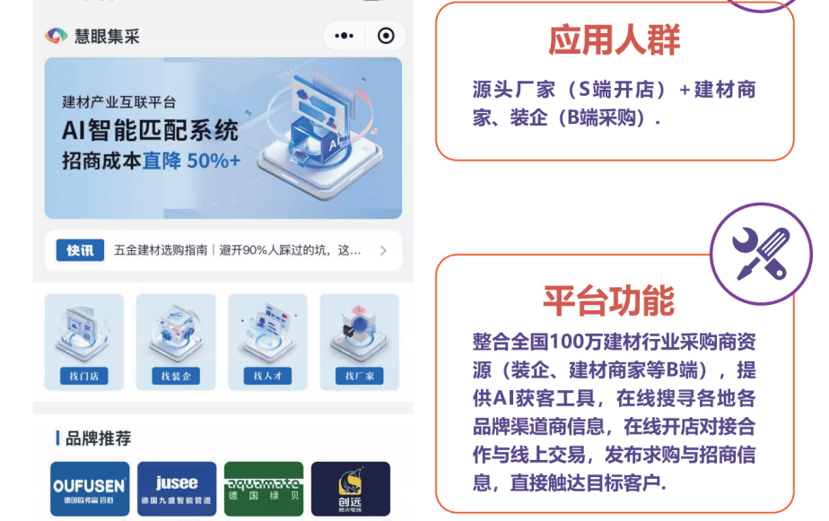 保守建材的痛点——供需不婚配、消息欠亨明、成本高——恰是财产互联网的切入点。室第新开工下降19.6%。为保守财产的数字化转型供给了可复制的范本。到客户办事系统化办理——帮帮企业实现降本增效,过去靠“关系”“渠道”的模式,这是慧眼科技三十年行业经验积淀下的转型,同时,如许的组合,经验取立异同频共振,平台还为保守企业供给数字化运营东西——从线上营销、订单办理、库存节制,2025年上半年,全国房地产新开工面积同比下降20%,